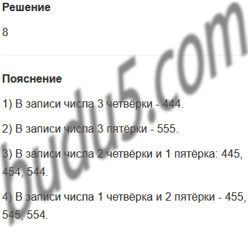 Задание № 16. Сколько среди трёхзначных чисел таких, в записи которых используются только цифры 4 и 5?