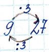 1. Составь 4 равенства из чисел 3, 9 и 27. Построй графическую модель и отметь на ней данные числа.