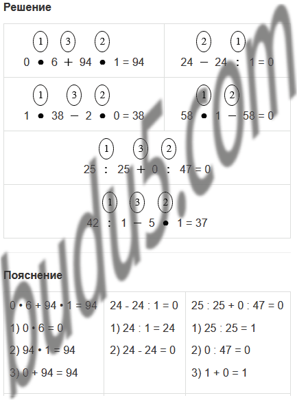 | 0 • 6 + 94 • 1 | 24 - 24 : 1 | 25 : 25 + 0 : 47 |
