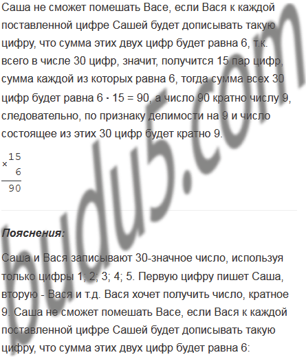 Саша и Вася записывают 30-значное число, используя только цифры 1; 2; 3; 4; 5. Первую цифру пишет Саша, вторую - Вася и т.д. Вася хочет получить число, кратное 9. Сможет ли Саша ему помещать?