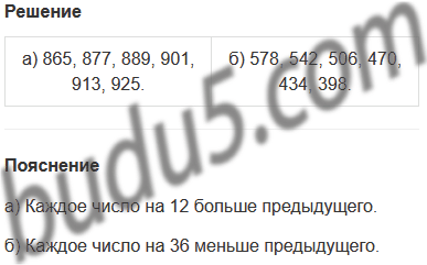 | а) 865, 877, 889 ... | б) 578, 542, 506 ... |