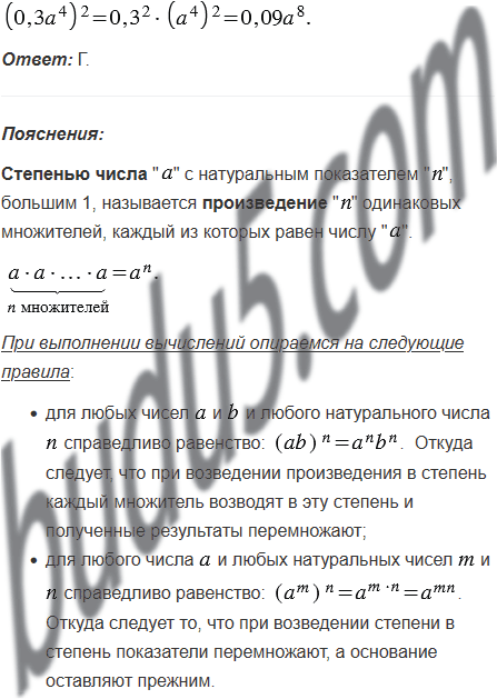 Выполните возведение в степень: