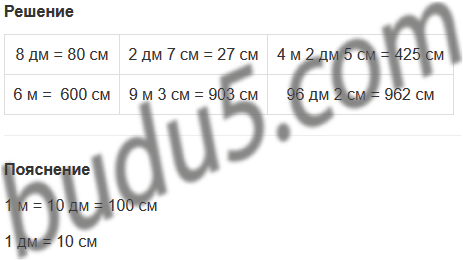 | 8 дм = ... см | 2 дм 7 см = ... см | 4 м 2 дм 5 см = ... см |