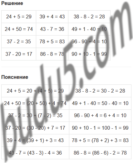 | 24 + 5 | 39 + 4 | 38 - 8 - 2 |