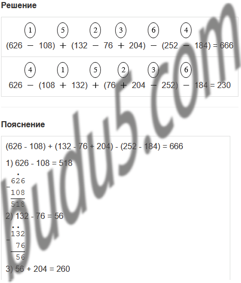 | (626 - 108) + (132 - 76 + 204) - (252 - 184) |