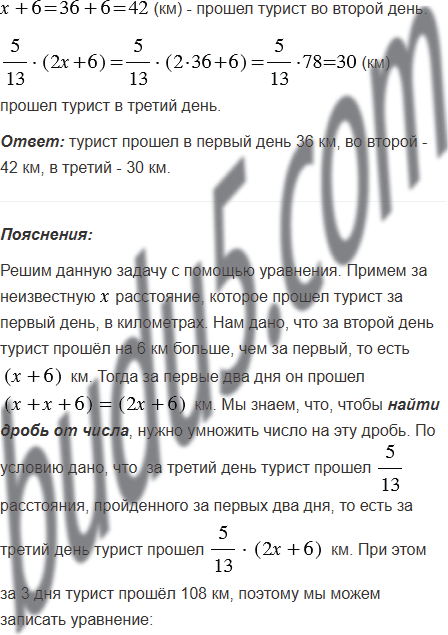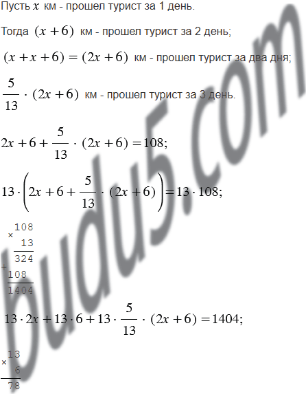 За 3 дня турист прошёл 108 км. За второй день он прошёл на 6 км больше, чем за первый, а за третий -