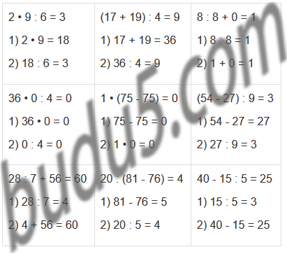 | 36 • 0 : 4 | 1 • (75 - 75) | (54 - 27) : 9 |