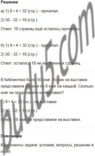 а) В книге 50 страниц. Олег читает эту книгу в течение 4 дней по 8 страниц в день. Сколько страниц ему ещё осталось прочитать?