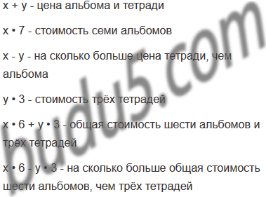 Задание № 13. Цена альбома х руб., а цена тетради - у руб. Что означают выражения: