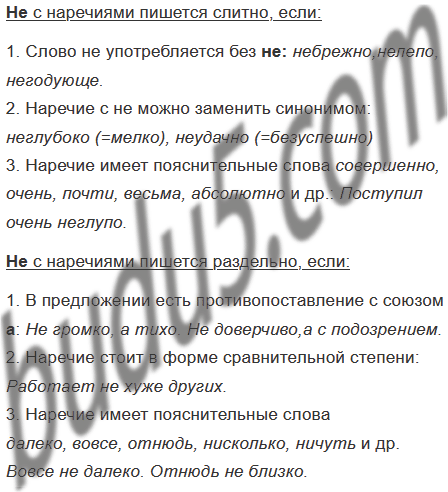 Проанализируйте данный в таблице материал и расскажите о правописании не с наречиями.