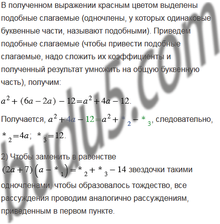 Замените звездочки такими одночленами, чтобы образовалось тождество: