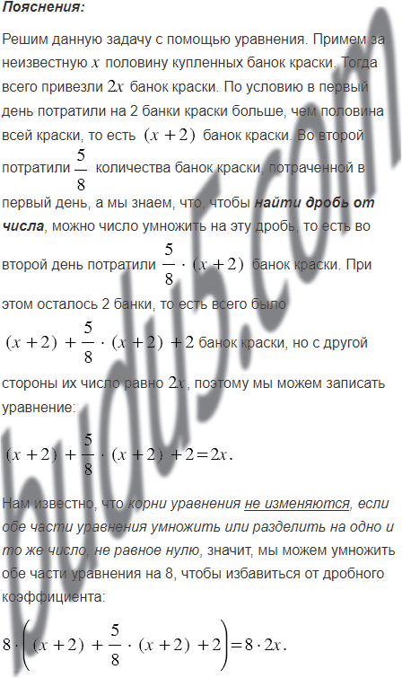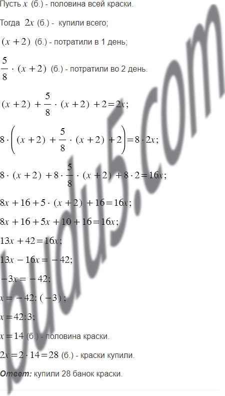 количества банок краски, потраченной в первый день. После этого осталось 2 банки. Сколько банок краски купили?