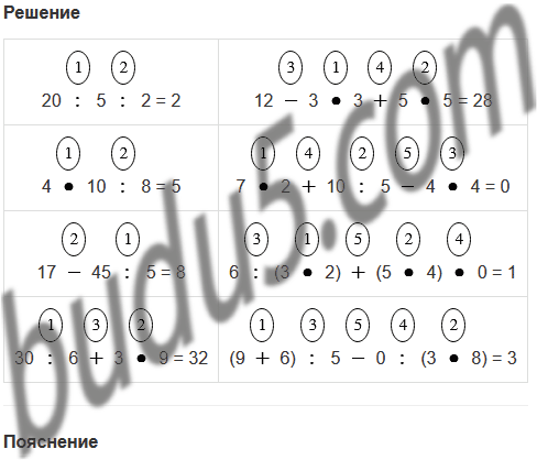 | 30 : 6 + 3 • 9 | (9 + 6) : 5 - 0 : (3 • 8) |