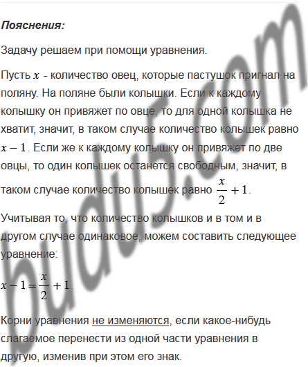(Задача из русского фольклора.) Пастушок пригнал на поляну овец. На поляне были колышки. Если к каждому колышку он привяжет по овце, то для одной колышка не хватит. Если же к каждому колышку он привяжет по две овцы, то один колышек останется свободным. Сколько овец пригнал пастушок?