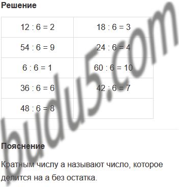 Задание № 1. Найди числа, кратные 6, и раздели их на 6: