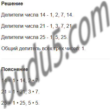 Задание № 3. Назови делители чисел 14, 21, 25. Есть ли у этих чисел общие делители?