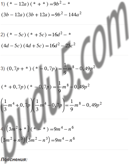 Какие одночлены надо поставить вместо звездочек, чтобы выполнялось тождество: