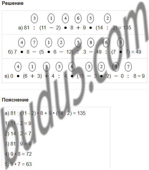 | а) 81 : (11 - 2) • 8 + 9 • (14 : 2) |