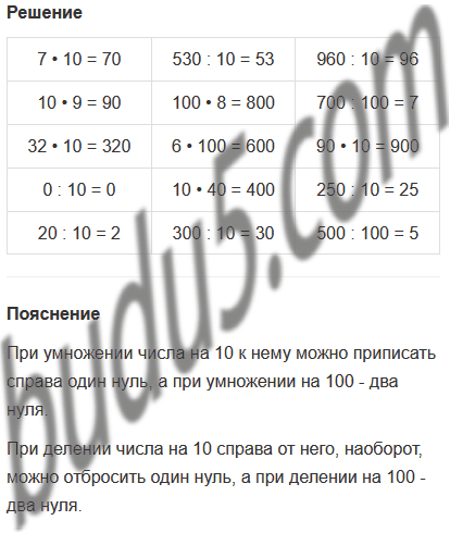 а) Сколько всего десятков? Сколько сотен? Вычисли, используя смысл умножения. Как можно быстро умножить 10 и 100 на число?