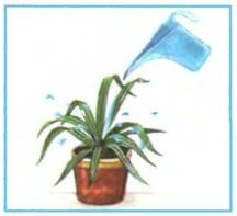 6. Надя правильно поливала растение, лила воду под корень. А Петя лил воду сверху на растение, разбрызгивая её. Так поливать нельзя! Вода останется на листьях и прольётся на пол, а растение не получит достаточно влаги.