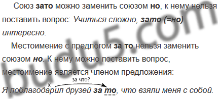 Рассмотрите таблицу. Расскажите о том как отличить союз зато от омонимического сочетания слов.