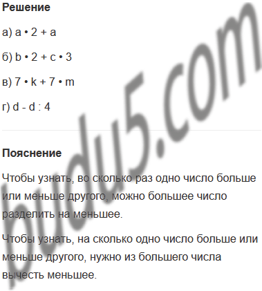 г) На поляне d берёз, а елей - в 4 раза меньше. На сколько берёз на этой поляне больше, чем елей?