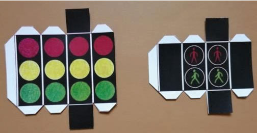 3. Вырежи из Приложения заготовки и склей из них модели светофора. Дома с их помощью научи свои игрушки переходить дорогу. Покажи взрослым, чему научились твои игрушки.