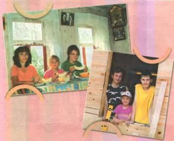На фото внизу справа папа с сыном и дочерью на стройке дачи. Скоро дача будет готова и они всей семьёй здесь будут отдыхать и выращивать фрукты и овощи. Папа, мама и дети в радостном ожидании.