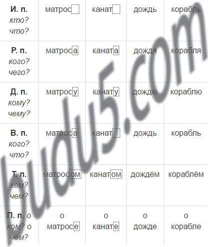 Существительные твёрдного склонения - существительные с твёрдым звуком в конце слова, после которого будут окончания склонений: -а, -у,-ом.