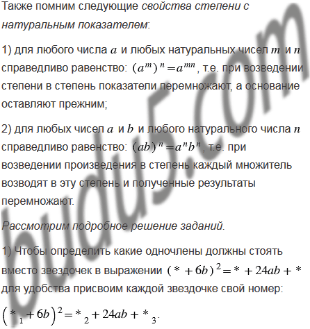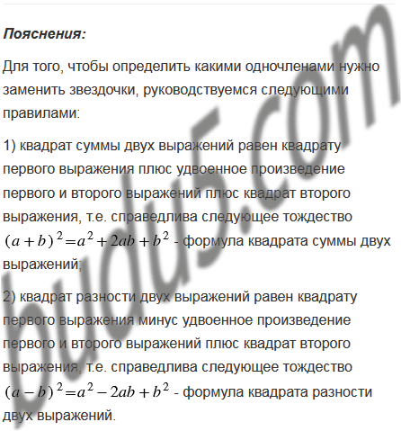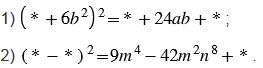 Замените звездочки такими одночленами, чтобы образовалось тождество:
