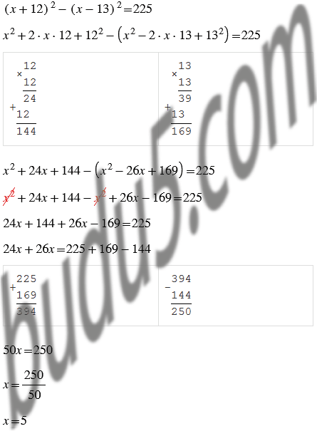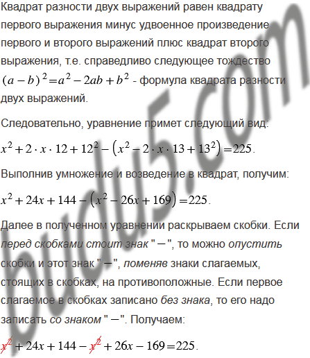При каком значении переменной значение квадрата двучлена на 225 больше значения квадрата двучлена ?