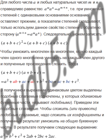 Выведите формулу квадрата трехчлена:
