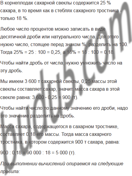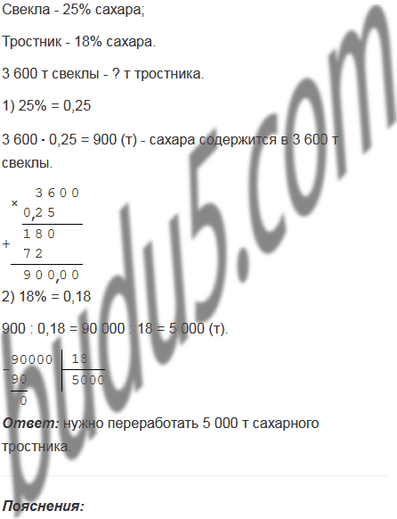 В корнеплодах сахарной свеклы содержится 25 % сахара, в то время как в стеблях сахарного тростника - только 18 %. Сколько тонн сахарного тростника надо переработать, чтобы получить столько же сахара, сколько из 3600 т сахарной свеклы?