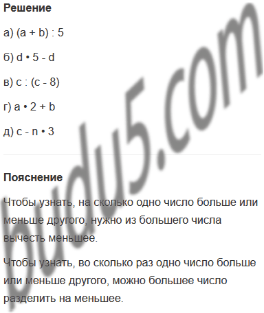 б) У Коли d марок, а у Пети - в 5 раз больше. На сколько меньше марок у Коли, чем у Пети?