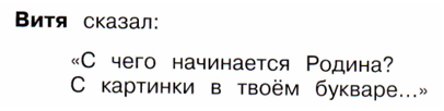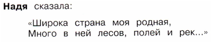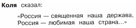 Нина привела слова из "Песни о Родине", Витя - из песни "С чего начинается Родина?", а Коля - первые строки гимна России.