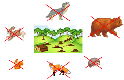 Вырубая леса, человек лишает животных жилья. Животные могут исчезнуть, потому что им негде будет жить.