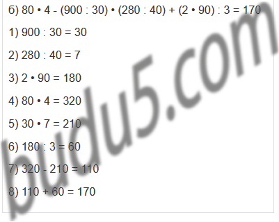 | б) 80 • 4 - (900 : 30) • (280 : 40) + (2 • 90) : 3 |
