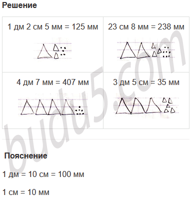 | 1 дм 2 см 5 мм = ... мм | 23 см 8 мм = ... мм |