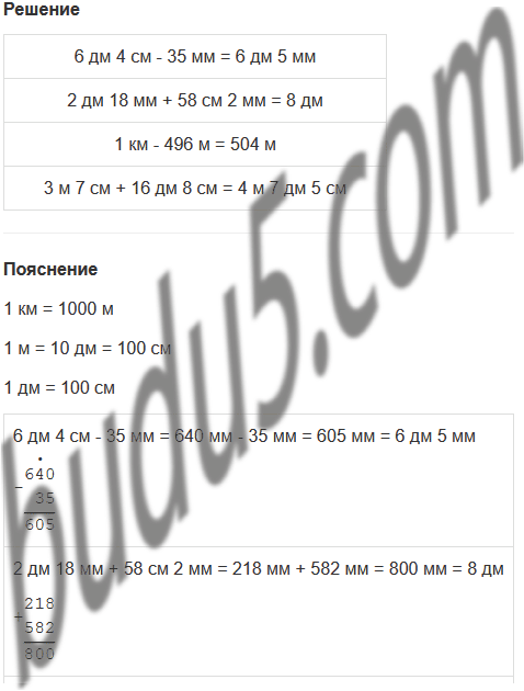 | 2 дм 18 мм + 58 см 2 мм | 3 м 7 см + 16 дм 8 см |