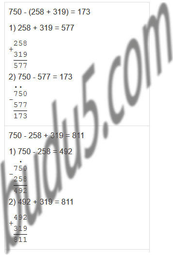 | 750 - (258 + 319) | 750 - 258 + 319 | 750 - 258 - 319 |