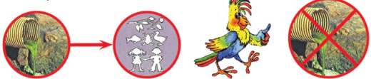 Конечно же папа Серёжи и Нади пошутил. На рисунке он объединил признаки животных из различных групп. Мы видим ноги насекомого – кузнечика, нижнюю часть туловища – рыбы с плавниками, хвостом, чешуёй, голову зверя – белки, крыло птицы, хвост птицы – петуха.