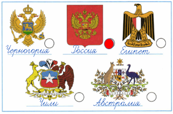 Если тебе интересно, узнай с помощью дополнительной литературы, Интернета, гербы каких стран показаны на рисунке. Подпиши.