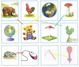 2. Подумай, как составить пары из этих рисунков. Соедини парные рисунки линиями.