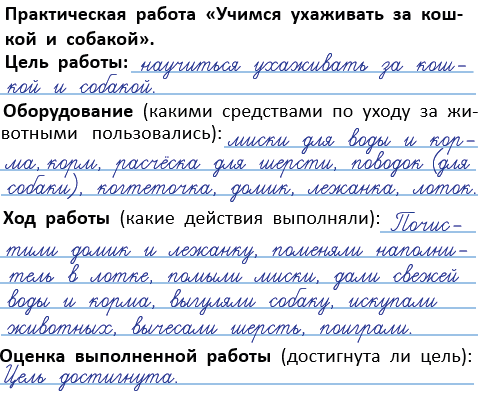 2. Практическая работа "Учимся ухаживать за кошкой и собакой".