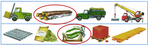 Во втором ряду лишняя бетономешалка. Всё остальное – это строительные материалы.