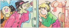 На рисунках мы видим, как взрослые незнакомцы пытаются обманом и силой увести детей.