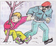 На этом рисунке незнакомец пытается увести ребёнка силой. В таких случаях нужно вырываться, громко кричать и звать на помощь!