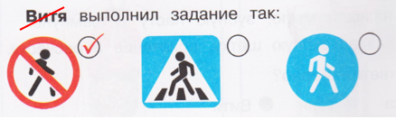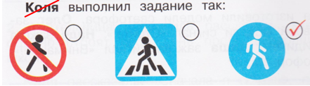 Коля выбрал синий круглый знак с фигуркой человечка.