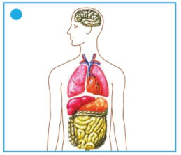Серёжа воспользуется левой таблицей, которая обозначена голубой фишкой. На этой таблице изображено внутренне строение тела человека.