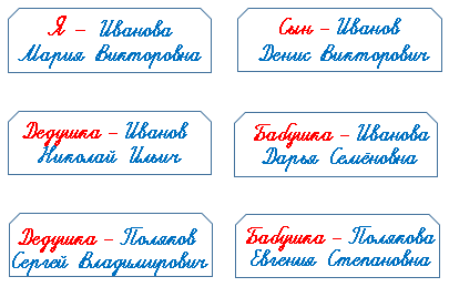 Клеим фото членов семьи и подписать можно таким образом ↓